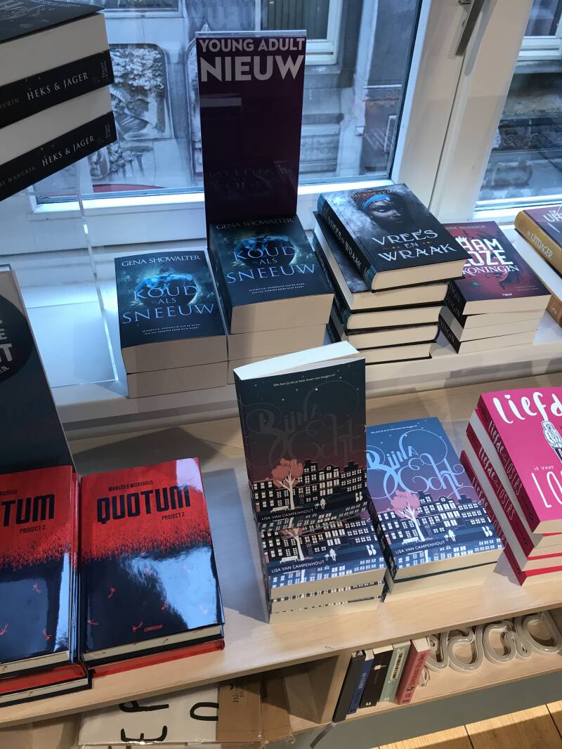 Op tafeltjes lagen de nieuwe boeken, en in de kasten de ‘wat oudere’ boeken (de boeken die niet net uitgegeven zijn). Verder lagen er ook nieuw uitgegeven series (bijvoorbeeld de nieuwe hardcovers van de Twilight serie). Op de tafeltjes lagen af en toe Nederlands en Engels wel door elkaar, maar dat stoorde niet.