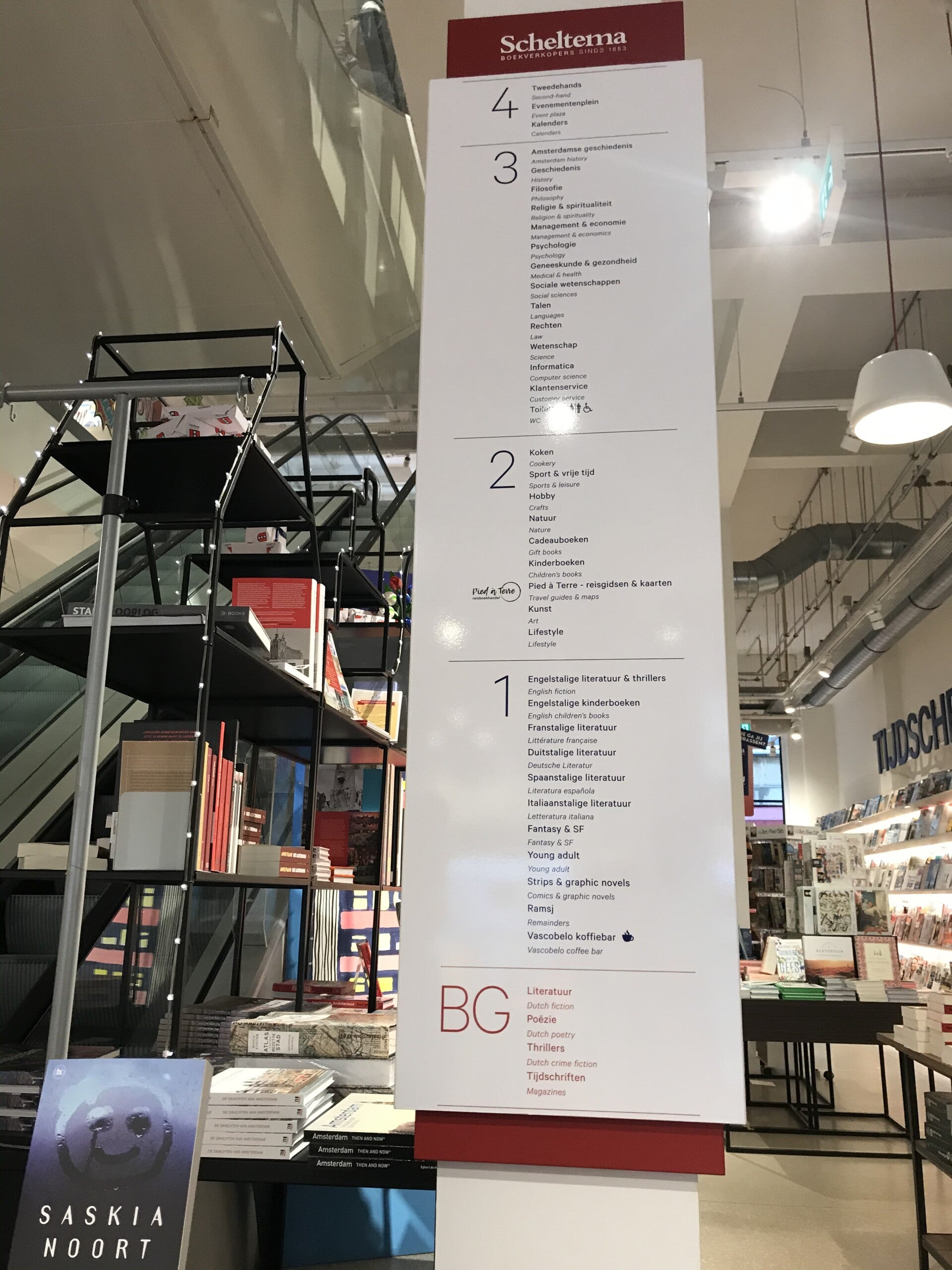Buiten dat je als je binnenkomt een roltrap ziet en een enorm bord dat aangeeft wat je op welke verdieping kan vinden, zie je ook al gelijk de nieuwste boeken en allerlei tijdschriften liggen.