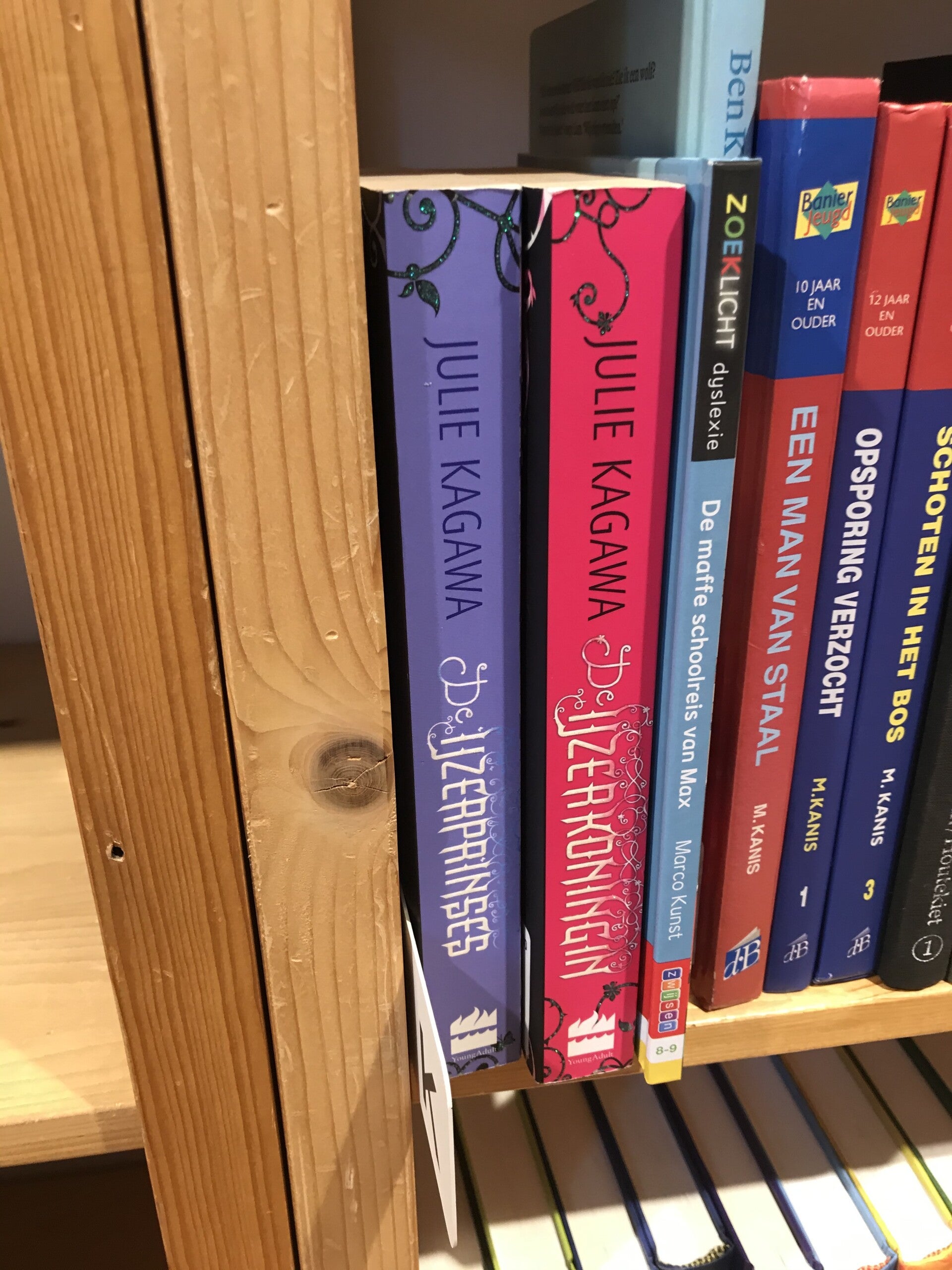 Wat ik jammer vond bij de tweedehands boeken, is dat je veel leuke boeken en series vond, maar bijna nooit deel 1. Zo waren twee boeken uit ‘Iron fey’ er, maar niet deel 1. Van ‘De Hongerspelen ‘ was alleen deel 2 er, en van de ‘Shatter me serie’ was alleen ‘Heel me’ er. Het is natuurlijk logisch dat er geen hele series staan, want de boeken worden door personen ingeleverd, en die hebben meestal niet alle delen. Ook wordt deel 1 het snelst gekocht.